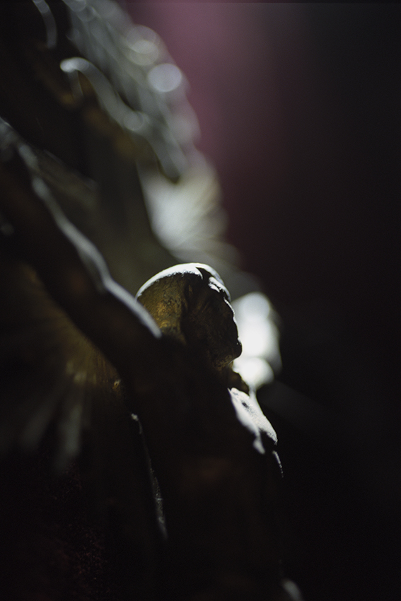 La photographe Claire Artemyz s’intéresse à la trace laissée par le vivant dans une temporalité étendue, de la préhistoire à nos jours. Ces traces peuvent relever de divers processus naturels (fossilisation, vestiges défrichés), d’actes corporels intentionnels (tatouage) ou témoigner de civilisations disparues (statuettes, outils, bijoux, statuaire religieuse). Il ne s’agit pas de documenter, mais de susciter sensations, émotions et hypothèses grâce à l’usage de la macro, d’une faible profondeur de champ et d’un éclairage en clair-obscur qui sculpte la surface et isole le détail, renforcé par des contrastes chaud-froid. Il en résulte une image mystérieuse et poétique, proche de l’abstraction tout en restant ancrée dans le réel. Le sujet devient surface d’émergence du trouble, d’une mémoire vivante ouverte aux interprétations du regardeur.