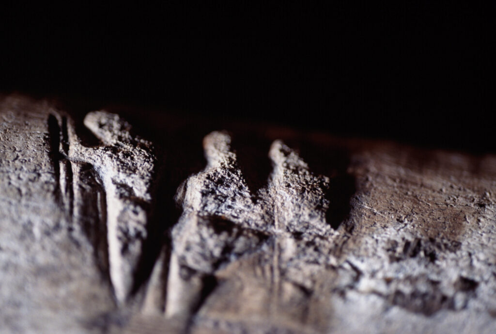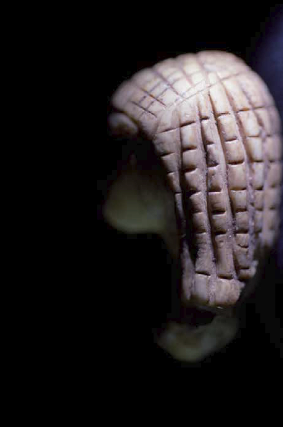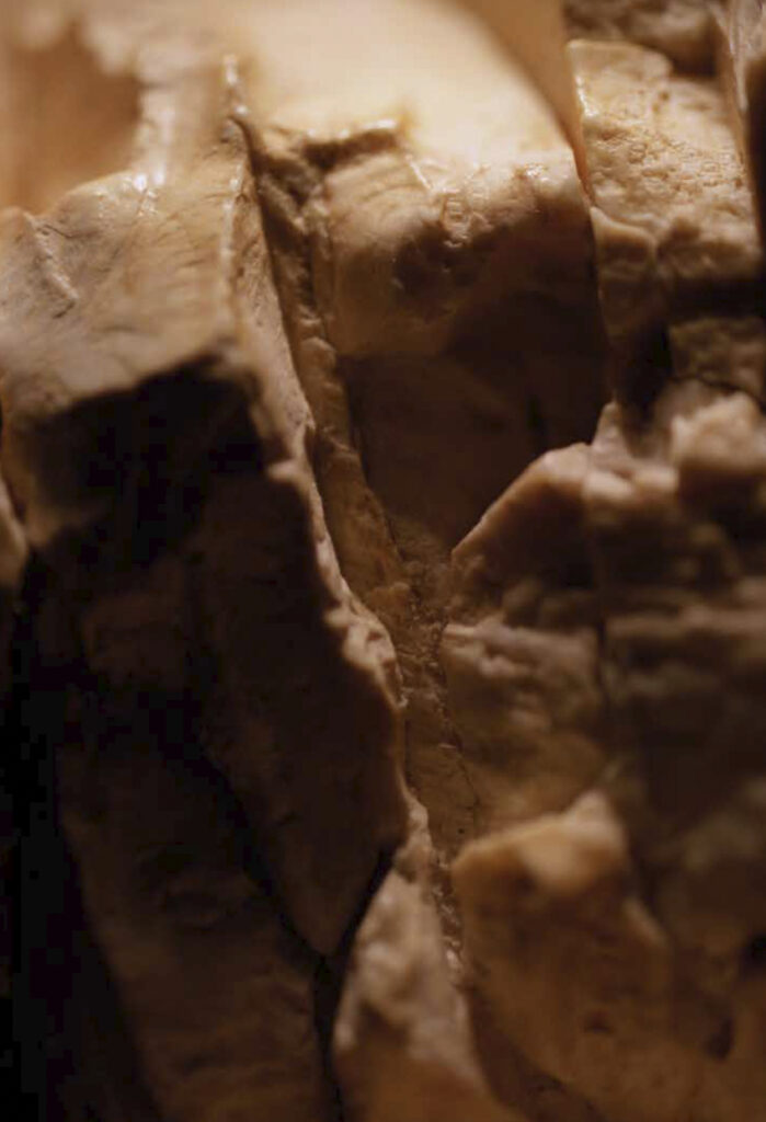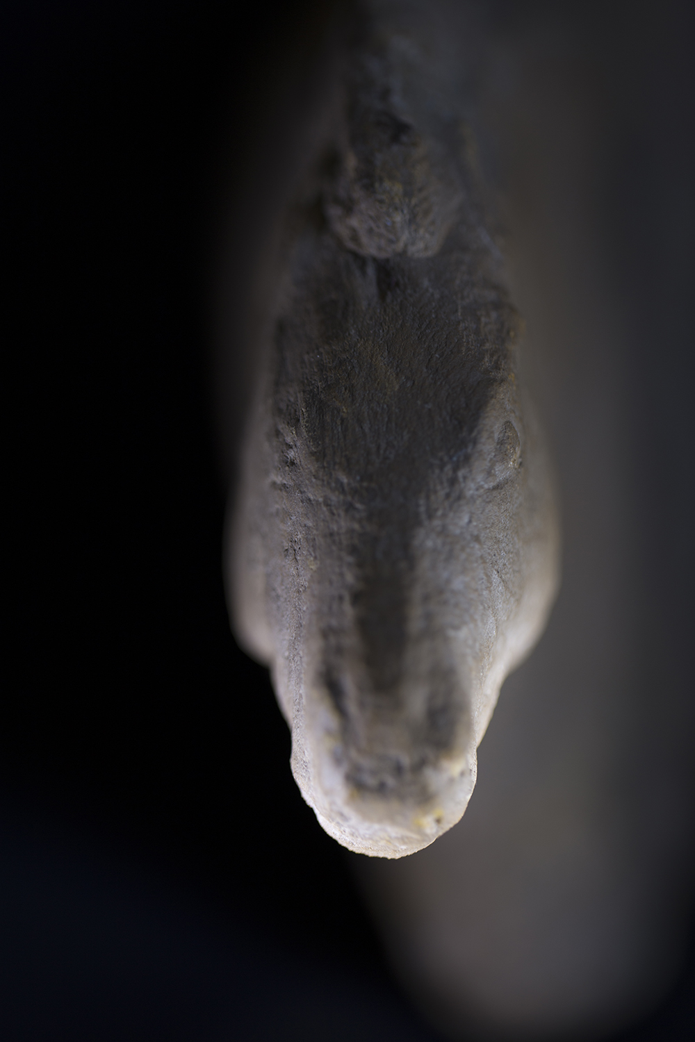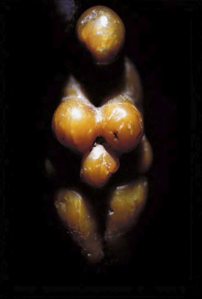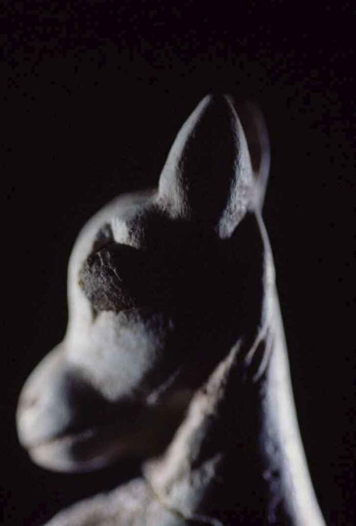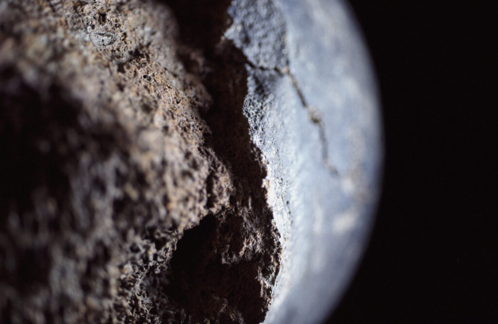 Dans sa série « Mémoires », Claire Artemyz photographie des objets* façonnés par l’être humain durant la préhistoire : outils, figurines, armes. L’approche de l’artiste n’a rien de documentaire. Sous son œil, ces artefacts inertes semblent s’animer d’une présence, nous ouvrant l’accès à un monde lointain dont il ne reste que de très rares bribes parfois encore difficiles à interpréter. Statuettes, bolas, silex ne sont alors plus des sujets d’étude, mais des seuils vers un monde qui a forgé le nôtre. Appréhendant pleinement la charge historique qu’ils portent en eux, la photographe s’emploie à les réveiller, à rendre visible cette mémoire ancestrale et surtout à traduire toute l’émotion que cela lui procure. Elle leur insuffle un supplément d’âme, façonne pour chacun une aura, forme d’hommage à cette humanité qui les a créés. Il en résulte des images étranges, énigmatiques, issues d’un traitement esthétique rigoureux. Chaque objet est isolé, plongé dans une ambiance en clair-obscur, souvent saisi d’un point de vue macroscopique ne les révélant que partiellement. À la frontière de l’abstraction, dans ce silence évocateur, proche du recueillement, l’objet photographié se charge d’intériorité, laissant toute sa place à l’interprétation du regardeur. Il oscille alors entre identification formelle et mobilisation de son imaginaire.